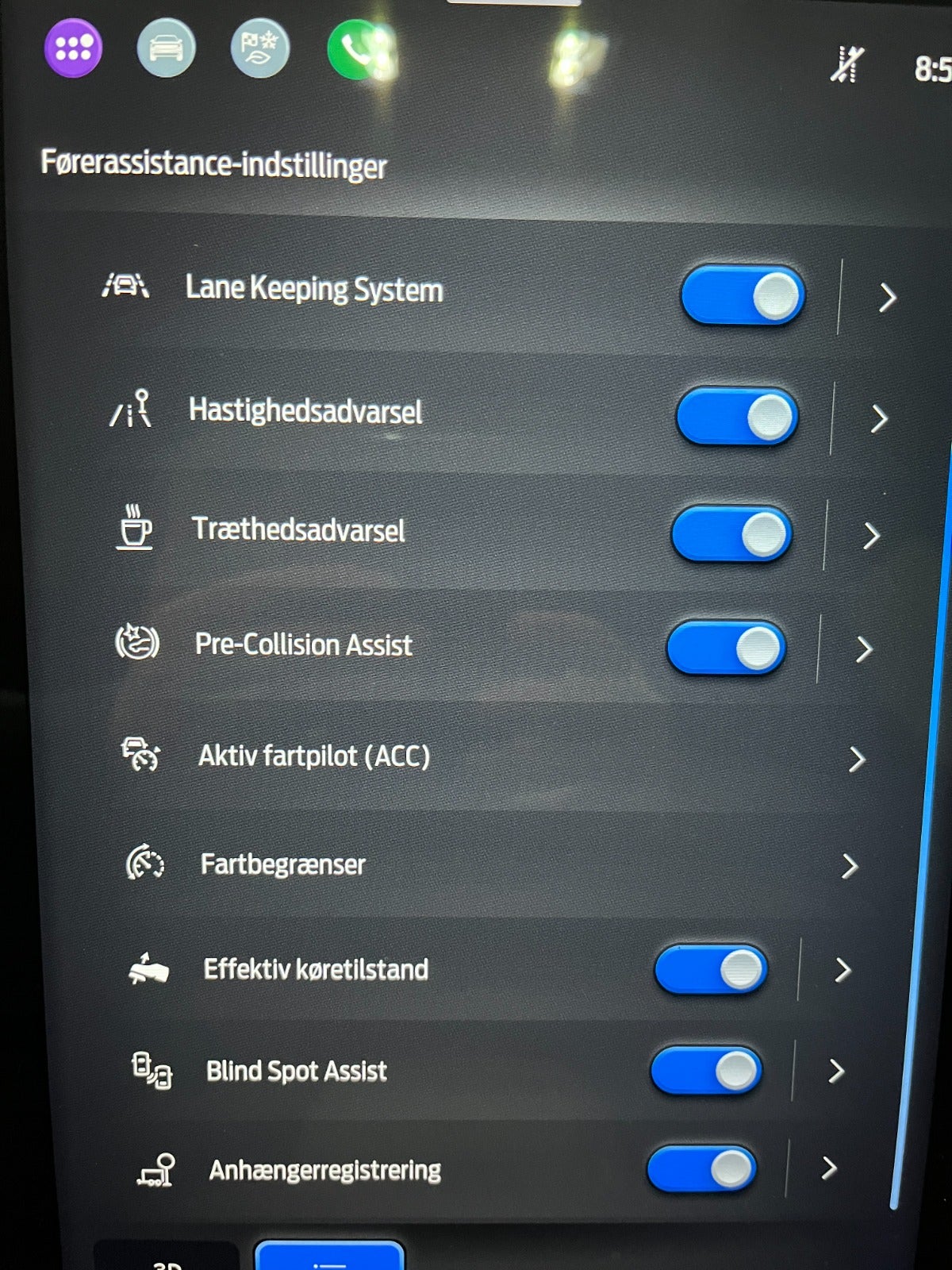 , automatisk nødbremsesystem, automatisk nødassistent, blindvinkelsassistent, vognbaneassistent, auto hold, træthedsregistrering, skiltegenkendelse, dæktryksmåler, esp, antispin