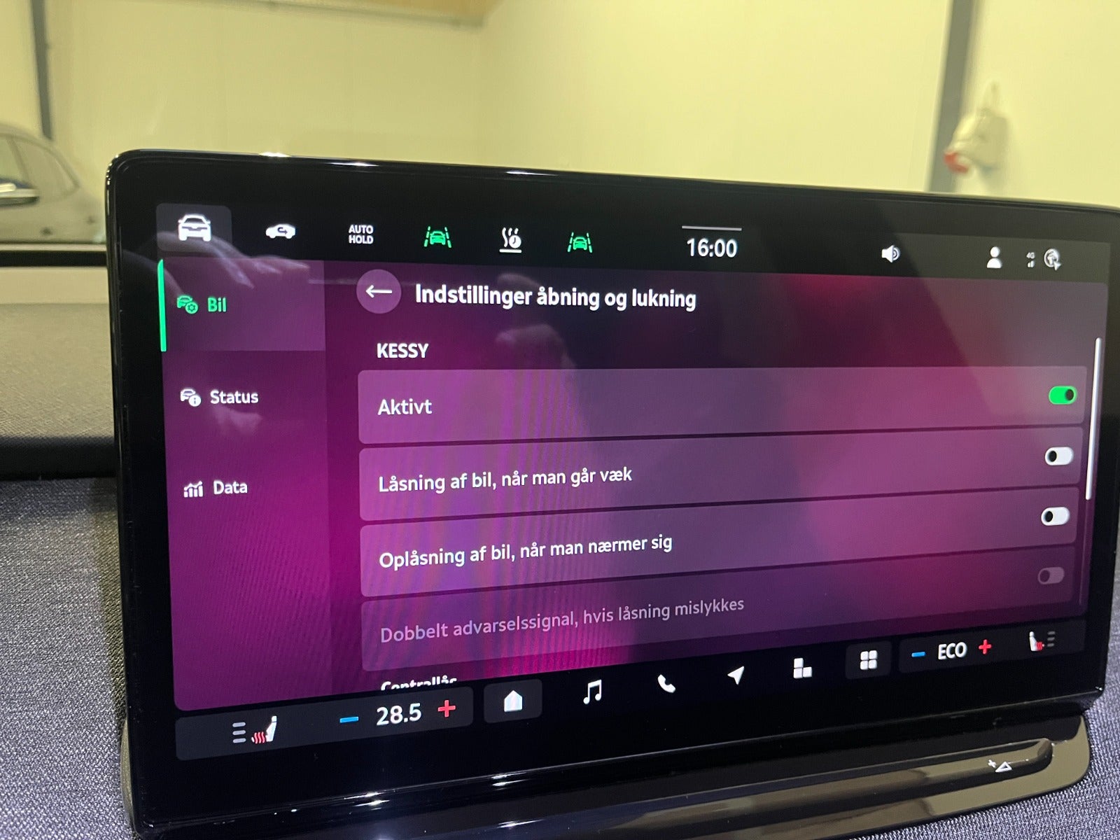 , automatisk nødbremsesystem, auto hold, esp, automatisk nødassistent, vognbaneassistent, antispin, træthedsregistrering, skiltegenkendelse, dæktryksmåler