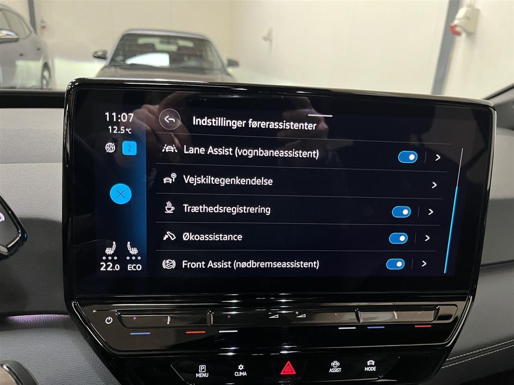 , automatisk nødbremsesystem, automatisk nødassistent, auto hold, vognbaneassistent, træthedsregistrering, skiltegenkendelse, dæktryksmåler, esp, antispin, airbag