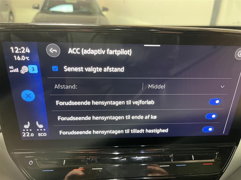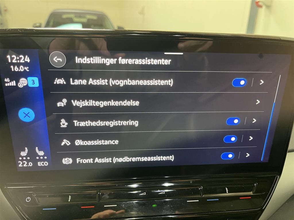 , automatisk nødbremsesystem, automatisk nødassistent, vognbaneassistent, auto hold, esp, antispin, skiltegenkendelse, træthedsregistrering, dæktryksmåler, intelligent hastighedsassistent, airbag,